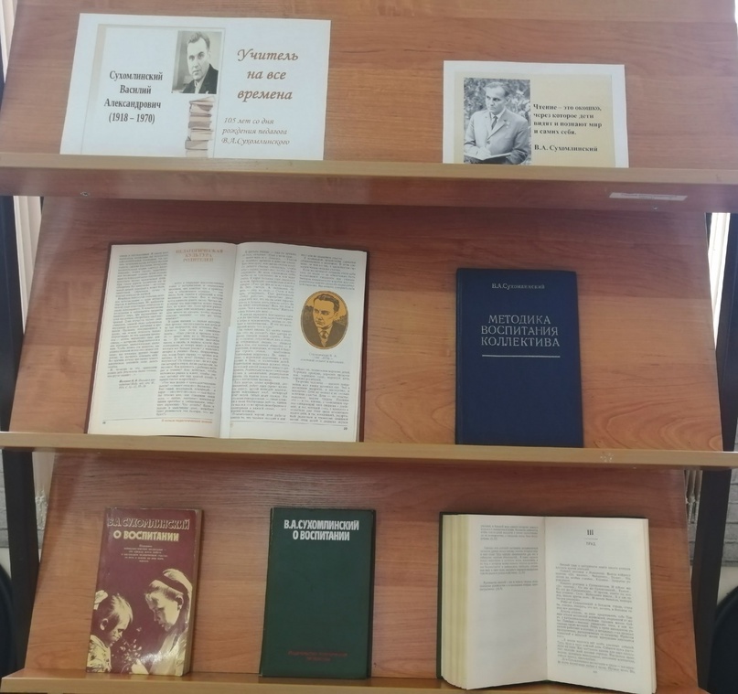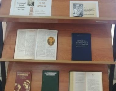 В рамках педагога и наставника в читальном зале Центральной библиотеки оформлена книжная выставка «Учитель на все времена», на которой представлены книги Сухомлинского, имеющиеся в фонде библиотеки.