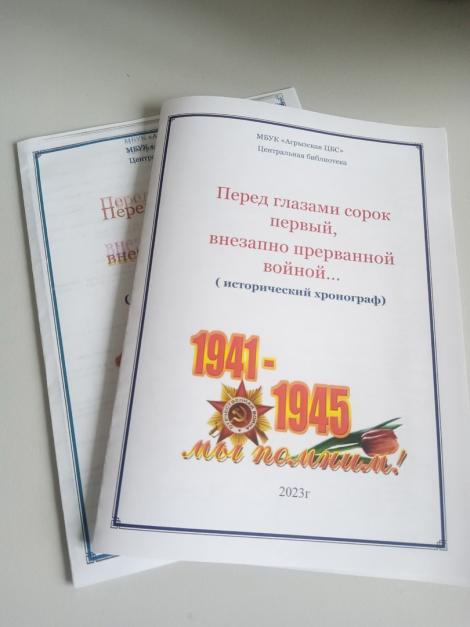 Сотрудники библиотеки раздали читателям брошюру (исторический хронограф) "Перед глазами сорок первый, внезапно прерванной войной".