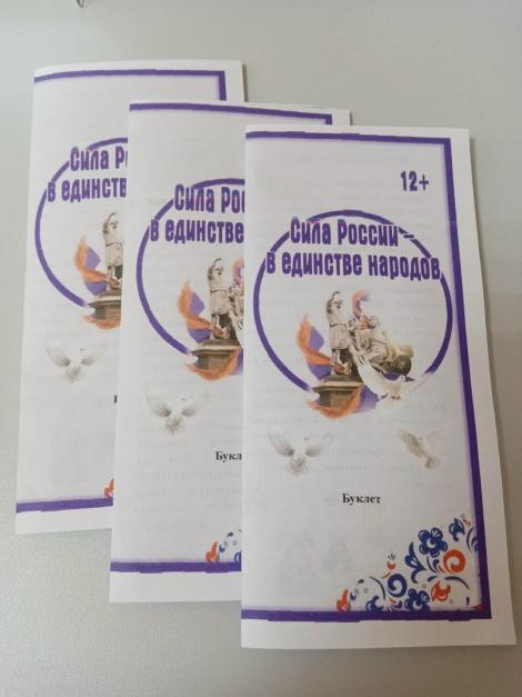 4 ноября - День народного единства. В преддверии праздника Дня народного единства в центральной библиотеке была проведена акция "Мы едины" с раздачей информационных буклетов " Сила России - в единстве народа".День народного единства имеет большую историю и огромный исторический и патриотический смысл. Этот праздник заставляет нас задуматься и сделать выводы о сути патриотизма и духе российского народа и страны.