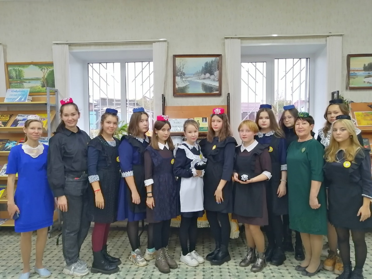 Бүген үзәк китапханәдәге "Ак калфак" остаханәсенә 1нче гимназиядә укучы кызлар килде. Калфак тегү серләренә бик теләп өйрәнделәр. Татар милли киемнәре тарихына багышланган презентация һәм күргәзмә зур кызыксыну уятты. Кызлар үзләре теккән калфакларын киеп фотога төштеләр һәм тагын килергә сүз бирделәр.