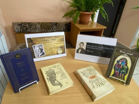Сегодня с целью познакомить читателей с многогранным творчеством и яркой личностью великого американского писателя Марка Твена (Сэмюэла Климента) сотрудники Центральной библиотеки оформили книжную выставку «Мастер с непревзойденным чувством юмора», посвященную 190 - летию писателя. Основной акцент был сделан на его главные произведения.