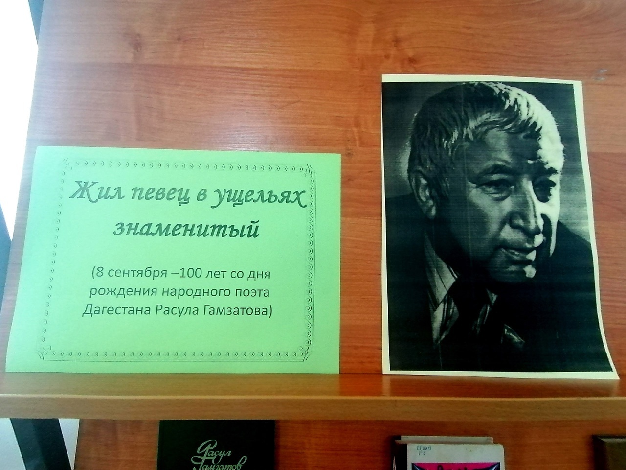 К этой знаменательной дате в читальном зале Центральной библиотеки оформлена книжная выставка «Жил певец в ущельях знаменитый», посвященная жизни и творчеству народного поэта Дагестана Расула Гамзатова. Вниманию читателей представлены сборники стихотворений и поэм, а также материалы о его жизни и творчестве.
