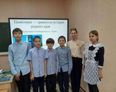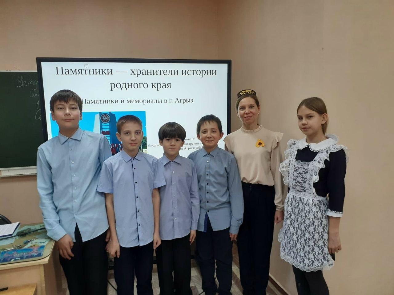 19 ноября в рамках кружковой работы для учащихся 6а класса МБОУ СОШ №3 г. Агрыз прошел краеведческий час «Памятники — хранители истории родного края». Библиотекарь с помощью презентации рассказала о памятниках, мемориальных досках, памятных местах нашего города.