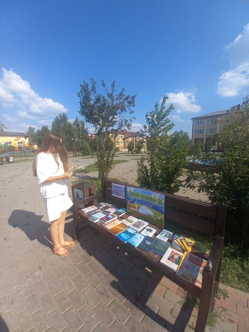 Во время работы читального зала под открытым небом читателям была дана возможность полистать самые интересные книги и журналы из фонда библиотеки, узнать интересные факты из истории праздника.