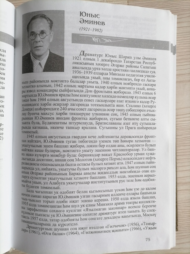 Драматург Юныс Шәрип улы Әминев 1921 елның 1 декабрендә Татарстан Республикасының хәзерге Әгерҗе районы Салагыш авылында урта хәлле крәстиян гаиләсендә туа. 1936-1939 елларда Минзәлә педагогия училищесында укый, аны тәмамлагач, бер ел Актаныш районында мәктәптә балалар укыта. 1940 елның ноябрендә гаскәри хезмәткә алынып, 1942 елның мартына кадәр хәрби мәктәптә укый, аннары взвод командиры сыйфатында Дон фронтына җибәрелә. 1943 елның 6 мартында Ю.Әминев яралы һәм контузияле хәлендә немецлар кулына әсир төшә һәм 1944 елның августында совет гаскәрләре азат иткәнгә кадәр Румыниядәге хәрби әсирләр лагеренда тоткынлыкта яши. Сталино (хәзерге Донецк) шәһәрендәге 240 нчы совет лагеренда әсир төшү сәбәпләрен ачыклау буенча махсус хәрби тикшерүне үткәннән соң, 1945 елның гыйнварыннан Ю.Әминев янәдән фронтка җибәрелә, сугыш беткәнче алгы сызыкта була, Будапештны штурмлауда, Братиславаны азат итү сугышларында катнаша, икенче тапкыр яралана. Сугышны ул Прага шәһәрендә тәмамлый.