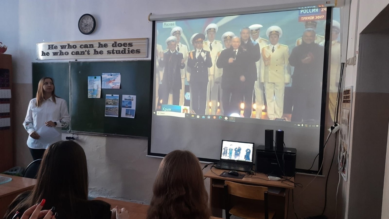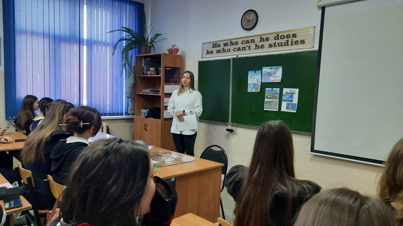 Сегодня для учеников 9 класса гимназии № 1 был проведен патриотический час "Крым-сердце большой страны". Ребята узнали о событиях Крымской весны, ставших такими значимыми для россиян, об известных достопримечательностях, о городе Севастополе, о Черноморском флоте. Беседа сопровождалась показом видеосюжетов про Крым. Ученики смогли увидеть каких успехов добился Крым за 10 лет в составе России. В конце урока ребятам раздали флаеры "Россия-Крым: 10 лет вместе".