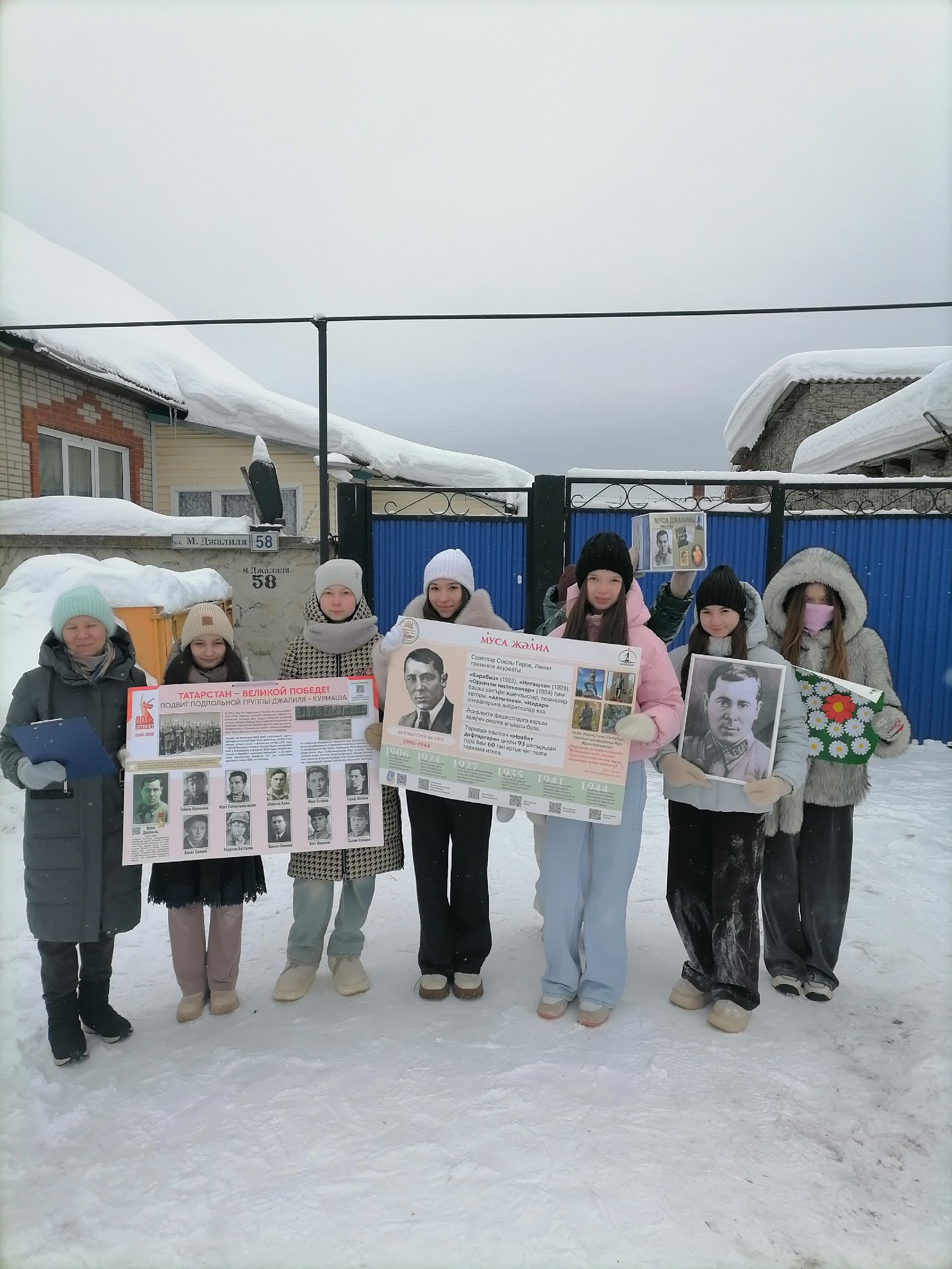 Сегодня, 11 февраля, на улице Мусы Джалиля гимназия №1 и школа №2 совместно с Центральной библиотекой провели акцию памяти посвящённую 120 летию татарского поэта-героя Мусы Джалиля "Поэт-герой Муса Джалиль".