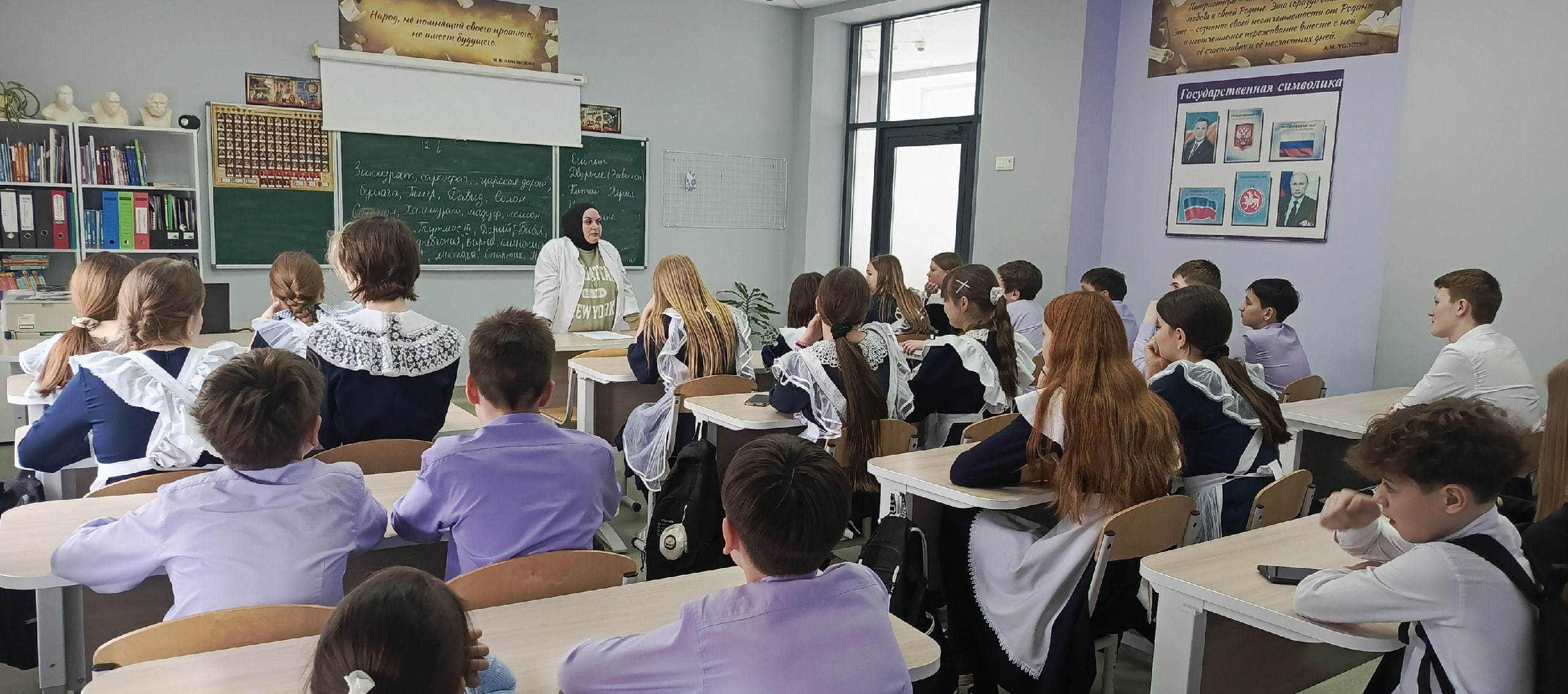 На встречу с учениками пришла медсестра кабинета здорового ребенка Казиева Эльвира Аликовна. Встреча прошла активно и содержательно. Основной задачей встречи было познакомить школьников с главными принципами профилактики: как распознать факторы риска, на что обратить внимание при появлении первых симптомов и какие ежедневные привычки помогают сохранить здоровье.