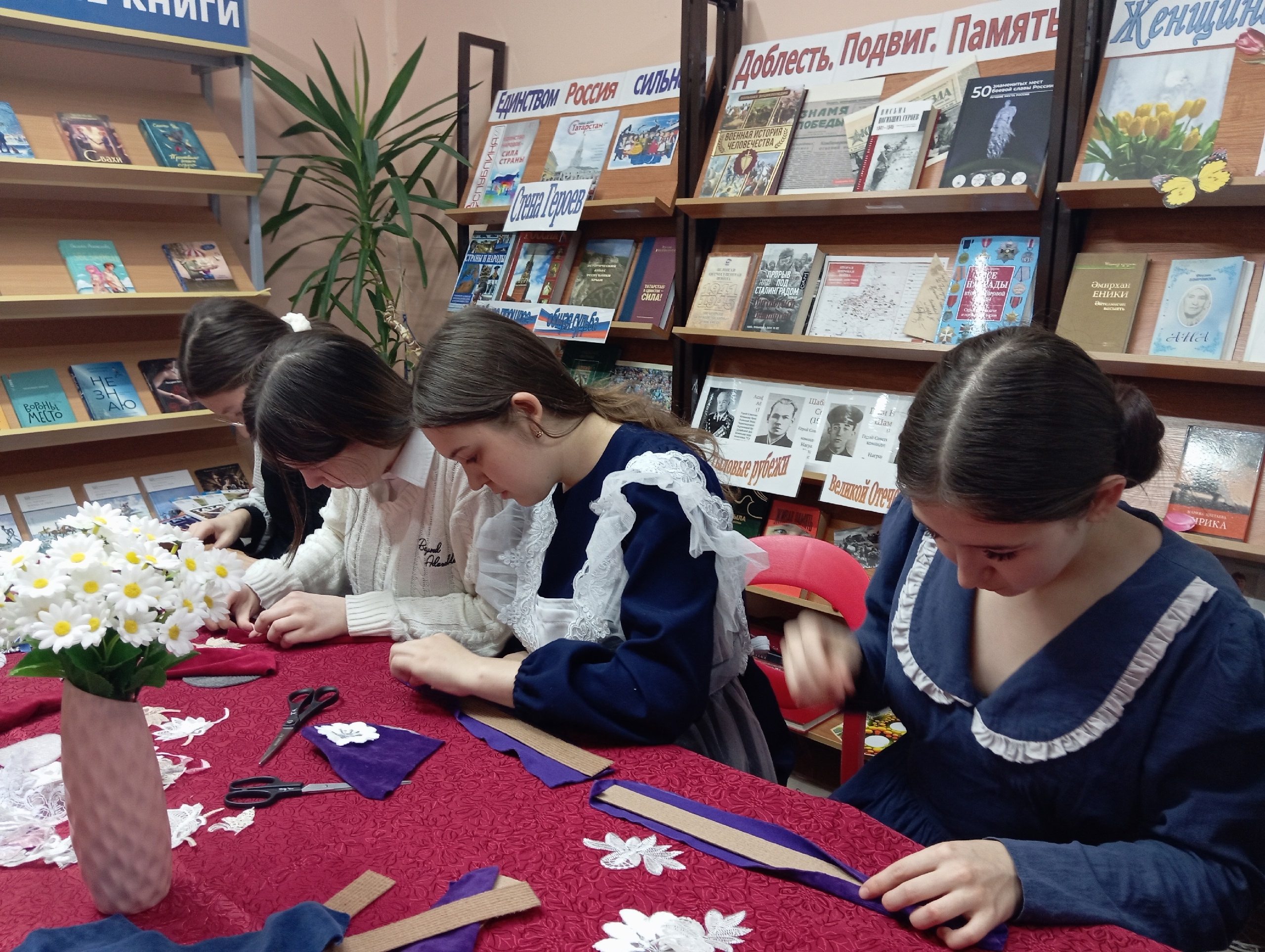 В основной части мероприятия библиотекарь показала образцы готовых изделий, объяснила, какие материалы понадобятся для работы.