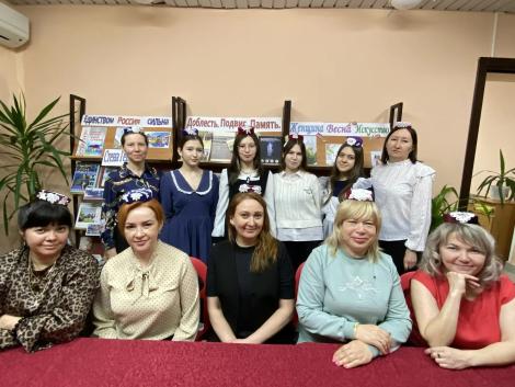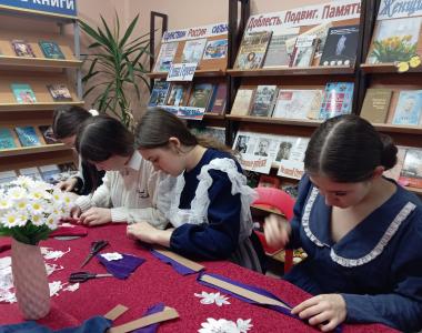 С целью приобщения подрастающего поколения к истокам татарской национальной культуры для учащихся школы №3 сотрудниками Центральной библиотеки проведен мастер-класс по изготовлению женского национального головного убора калфак.
