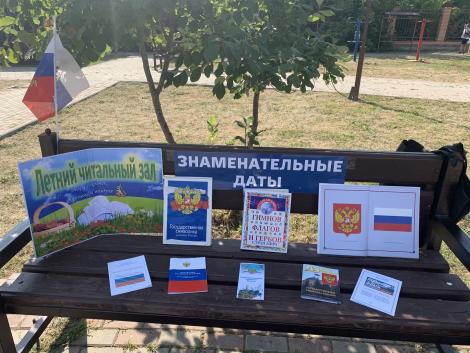 24 августа в парке "Яшьлек" библиотекари центральной библиотеки организовали выставку «Символика Российского государства», в ходе которой читатели узнали несколько интересных фактов из истории появления и «жизни» российского триколора, вспомнили, что символизируют его цвета, на зданиях каких учреждений он должен присутствовать и др.