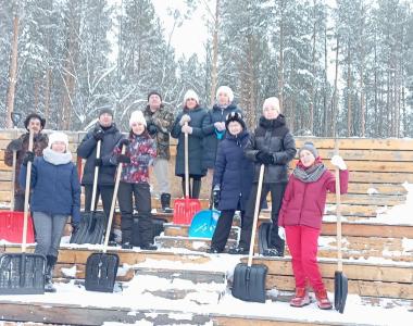 На протяжении 3-х дней 24, 25, 26 января сотрудники центральной и центральной детской библиотеки приняли активное участие в субботнике в парке "Орешник". Нашими силами были расчищены от снега зоны отдыха, сцена и часть трибуны.