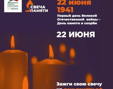 В этот день народы России скорбят по своим соотечественникам, которые стали жертвами Великой Отечественной войны 1941–1945 годов и ценой жизни защитили свое Отечество. Одним из ключевых тематических проектов Дня памяти и скорби является Всероссийская акция «Свеча памяти».