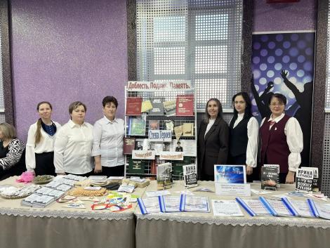В отдельном блоке для посетителей организовали выставку "Защитникам - слава и память", на которой были оформлены специальные папки, с собранной информацией из подборок газетных статей о героях СВО. Также были представлены книжные новинки, посвященные этой тематике.