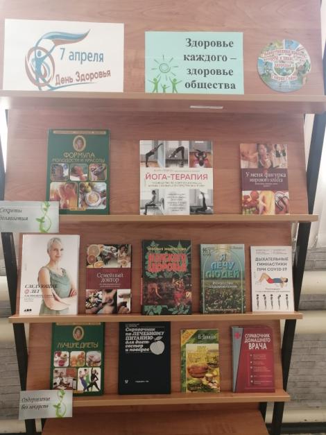 В читальном зале Центральной библиотеки оформлена книжная выставка «Здоровье каждого-здоровье общества», на которой представлена литература о здоровом образе жизни, правильном питании, лечебной физкультуре и массаже, а также о лекарственных растениях и их целебных свойствах. Цитатой к выставке послужили слова немецкого поэта Генриха Гейне: «Единственная красота, которую я знаю,- это здоровье».